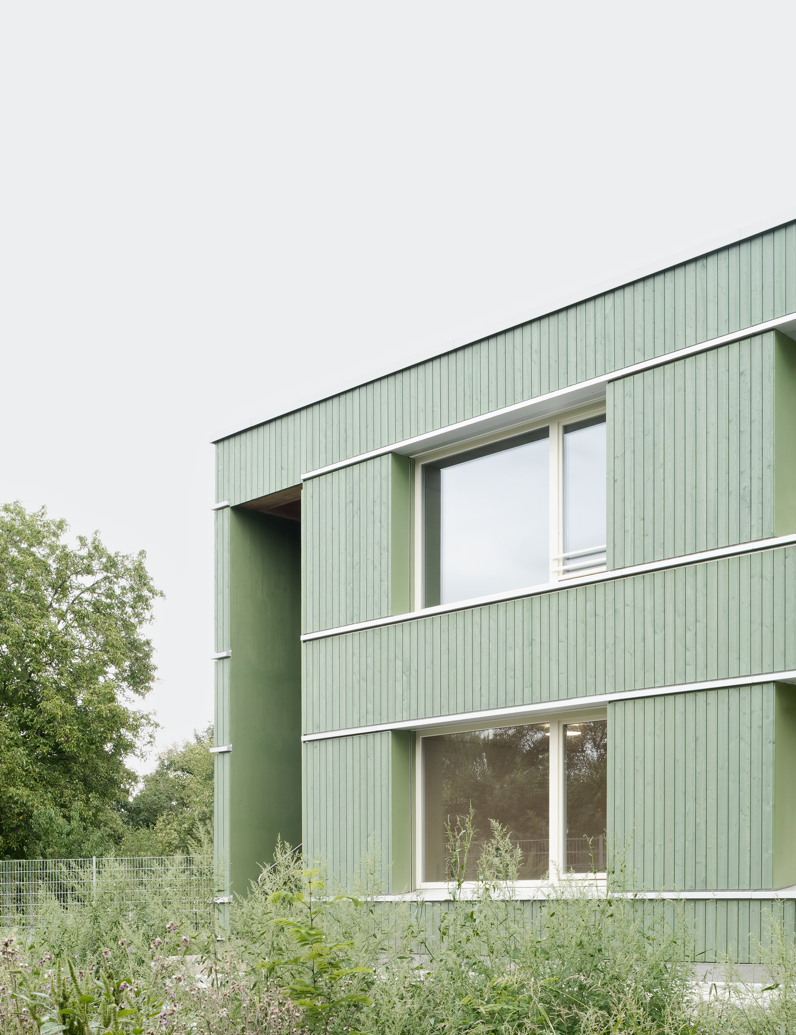 Die Wohngruppen sind aus den Grundsätzen von Individualität, Normalität und Autonomie entwickelt. Durch die zurückhaltende, der Bauaufgabe angemessenen Architektursprache wird der Charakter eines Heims vermieden; Wie selbstverständlich integriert sich das Ensemble in die ‚Normalität‘ des Umfelds. Die helle und freundliche Atmosphäre im Inneren soll Sicherheit und Geborgenheit vermitteln und zu einer positiven Entwicklung des Einzelnen sowie ein harmonisches Miteinander bzw. Teilhabe in der Gruppe beitragen.